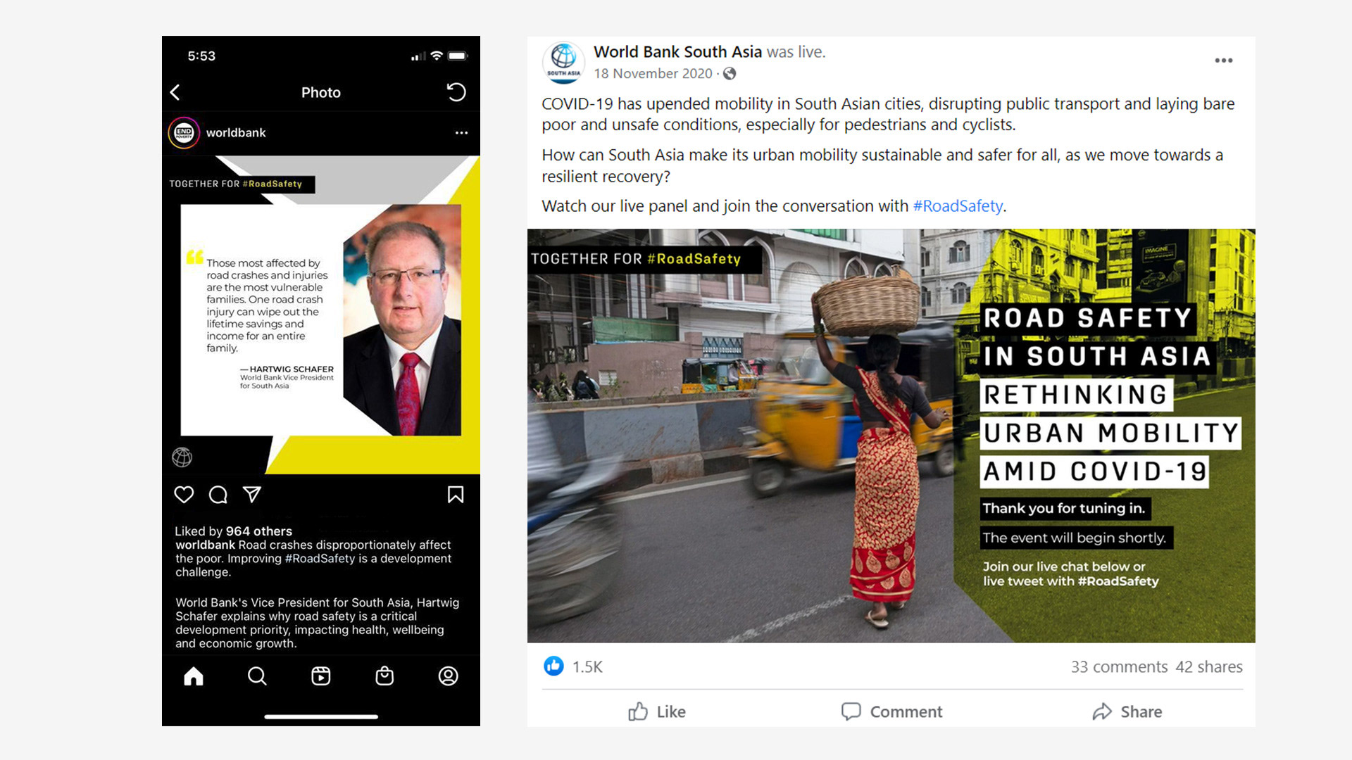 Co-hosted and led the creative direction of the World Bank-IMF Annual Meetings and designed the digital branding campaign to highlight the urgency of road safety and how can urban mobility become sustainable and safer for all.