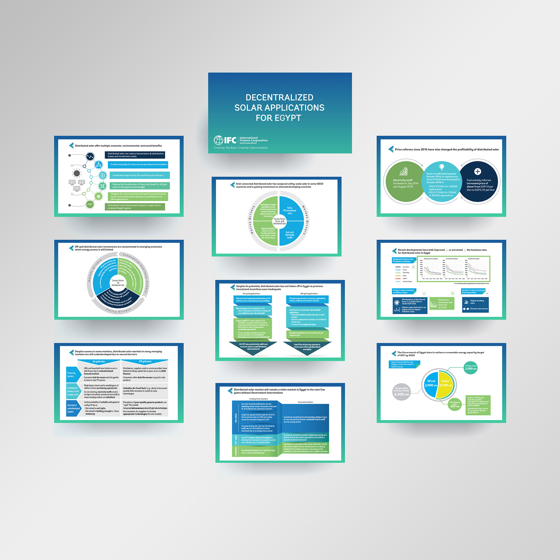 Infographic design highlighting policy actions to unlock the distributed solar market for on-grid and off-grid applications in Egypt.